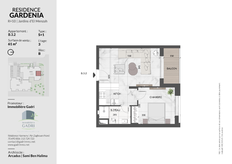Compact, fonctionnel et lumineux, le S+1 est idéal pour les jeunes actifs ou les investisseurs.